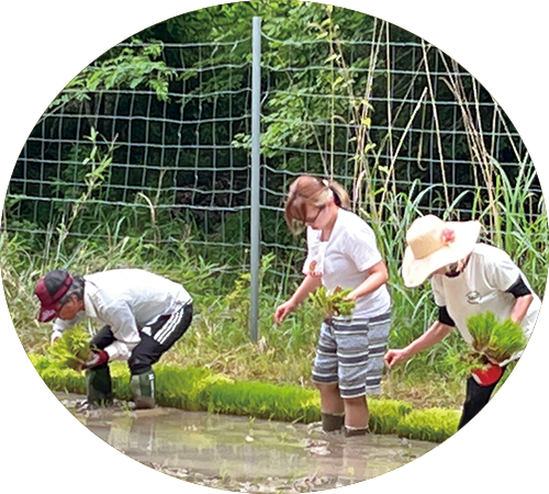 多くの方に土を触って体験していただけるようにイベントを開催しています。田植え・雑草取り・稲刈り、働いた後のご飯は美味しいですよ。